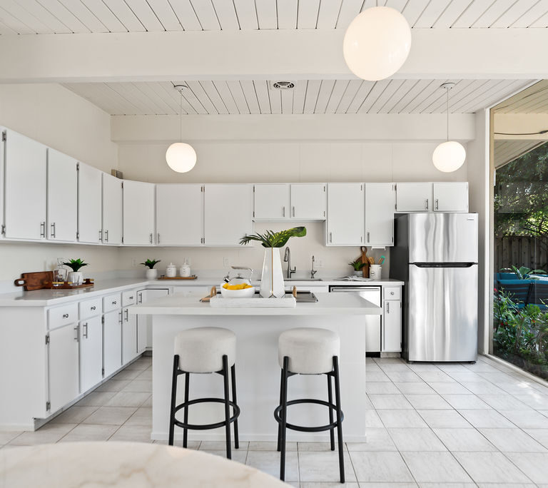 Enter through a private atrium courtyard, perfect for enjoying the Bay Area’s beautiful year-round weather.